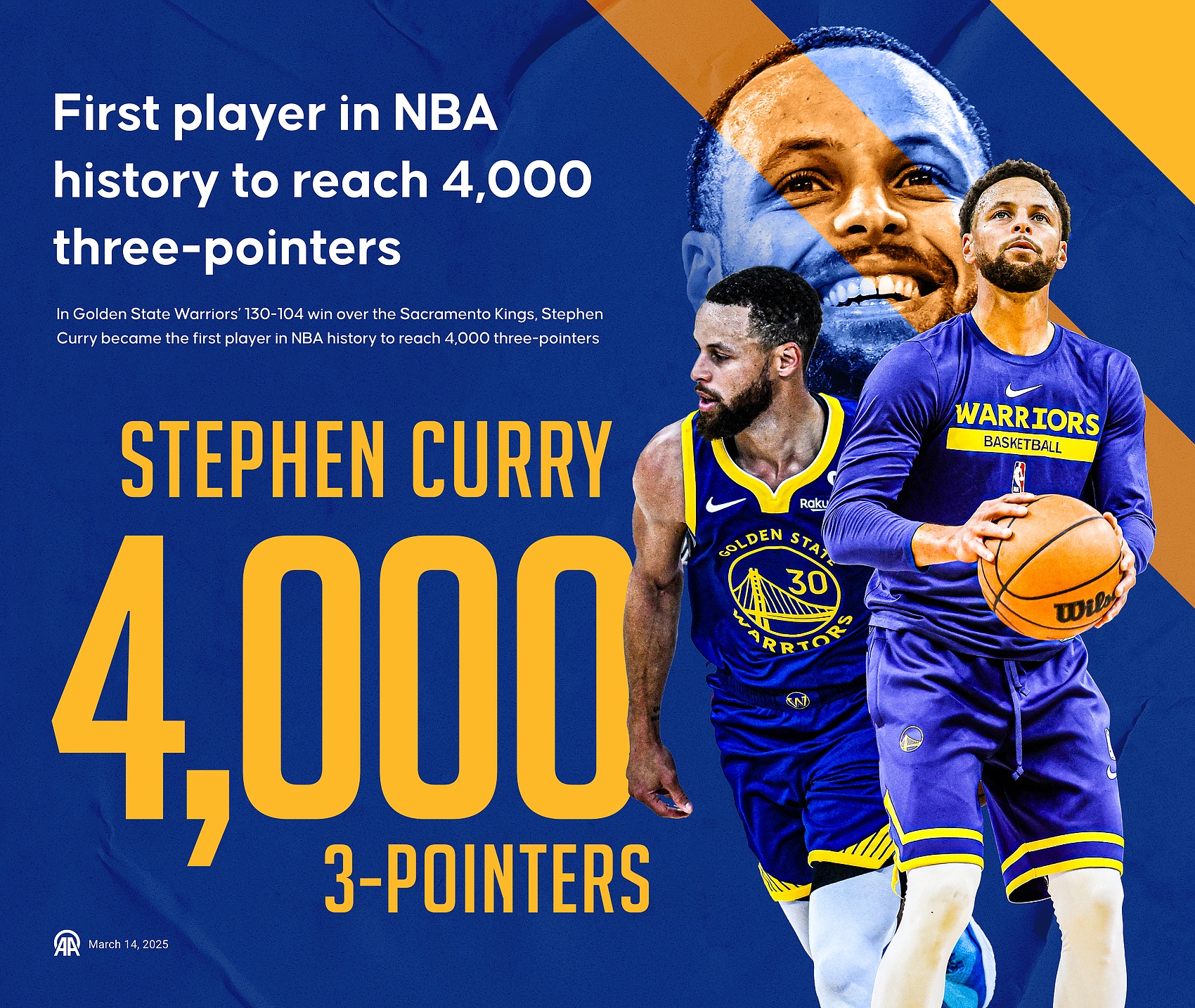斯蒂芬-庫里剛剛創(chuàng)造了4000記三分球的紀(jì)錄。而自從庫里的金州勇士隊(duì)得到吉米-巴特勒以來,他們?nèi)〉昧?3勝1負(fù)的戰(zhàn)績,并沖到了西部第六的位置。