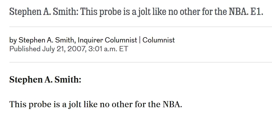 在《一樁事先張揚(yáng)的謀殺案》中,相信主角清白的法官,說出了這么一句話:「給我一個(gè)偏見,我將撬動(dòng)地球」。而史蒂芬·A·史密斯的職業(yè)生涯,某種意義上可以概括為:給我一個(gè)詹姆斯,我將撬動(dòng)體育圈最多的流量。
