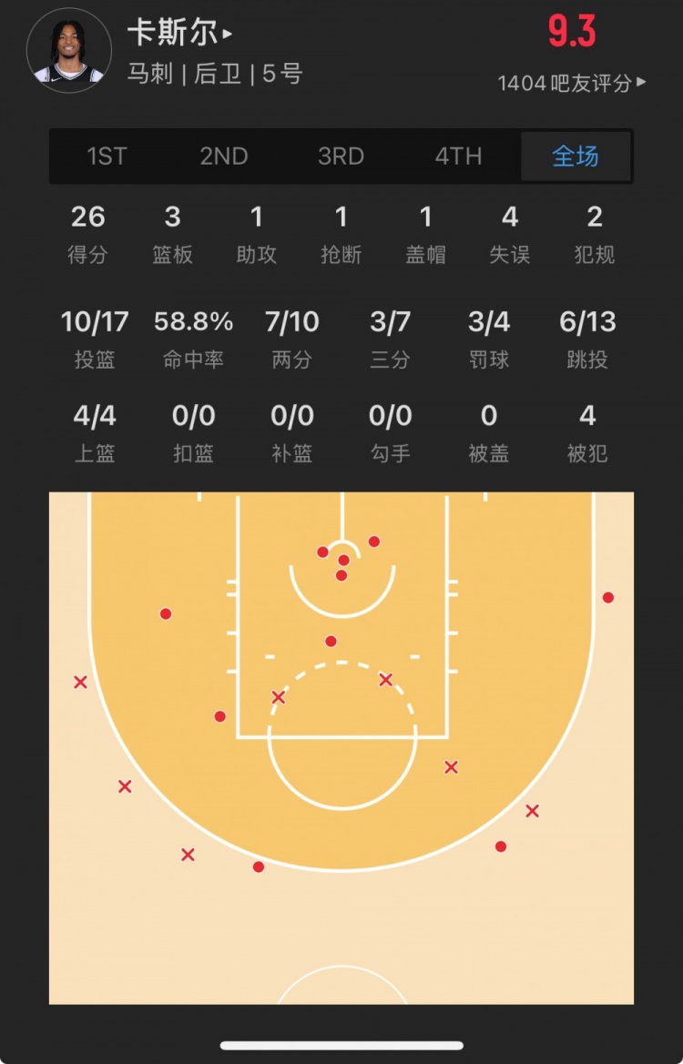 菜鳥丨克內(nèi)克特27中13砍32分 卡斯爾26分 布朗尼15分鐘5中1得5分