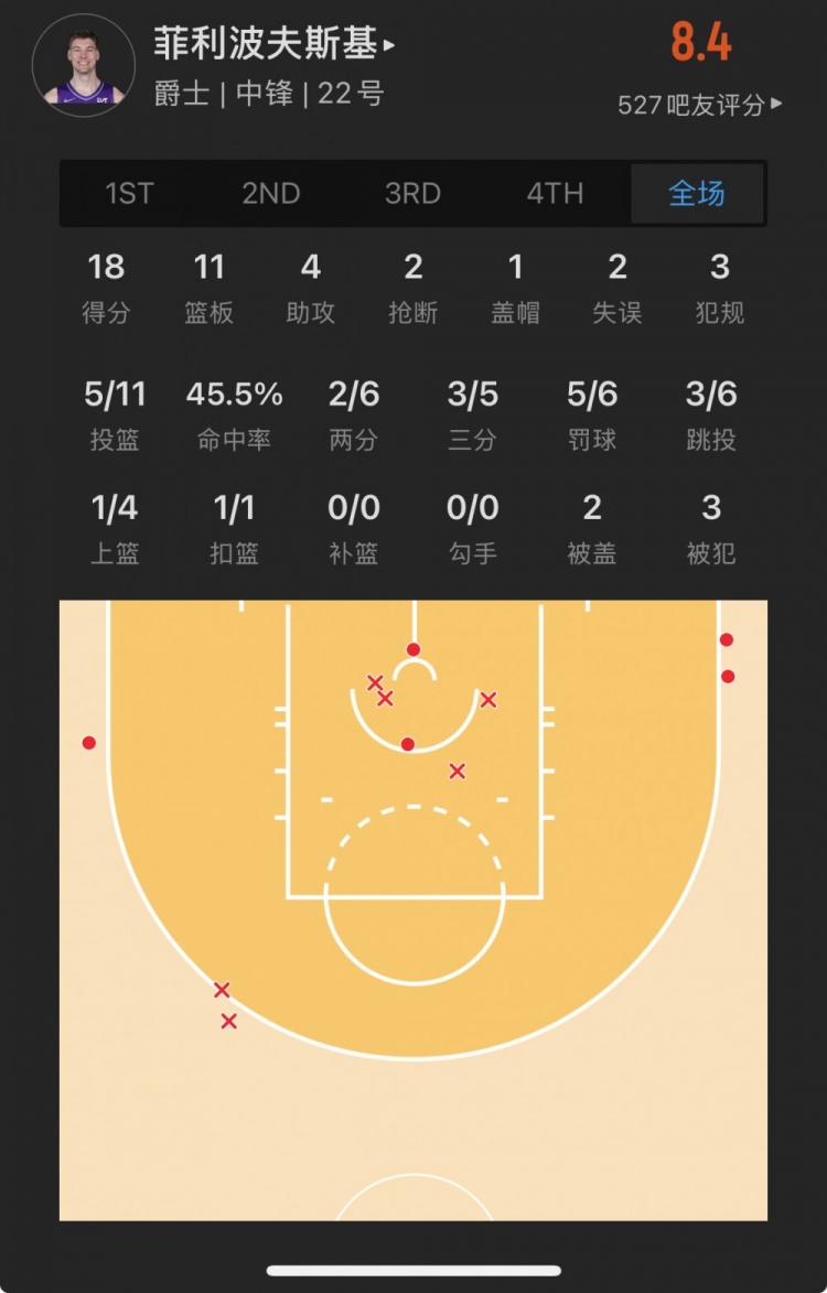 爵士32號秀 凱爾-菲利波夫斯基 登場33.0分鐘