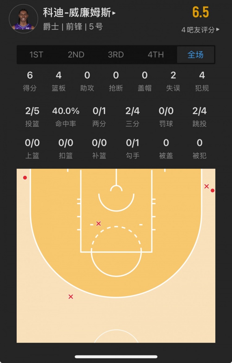 爵士10號秀 科迪-威廉姆斯 登場26.2分鐘