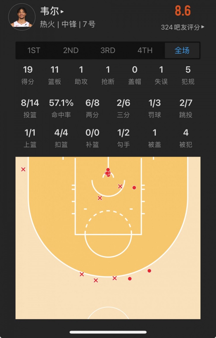 熱火15號(hào)秀 克雷爾-韋爾 登場(chǎng)35.7分鐘
