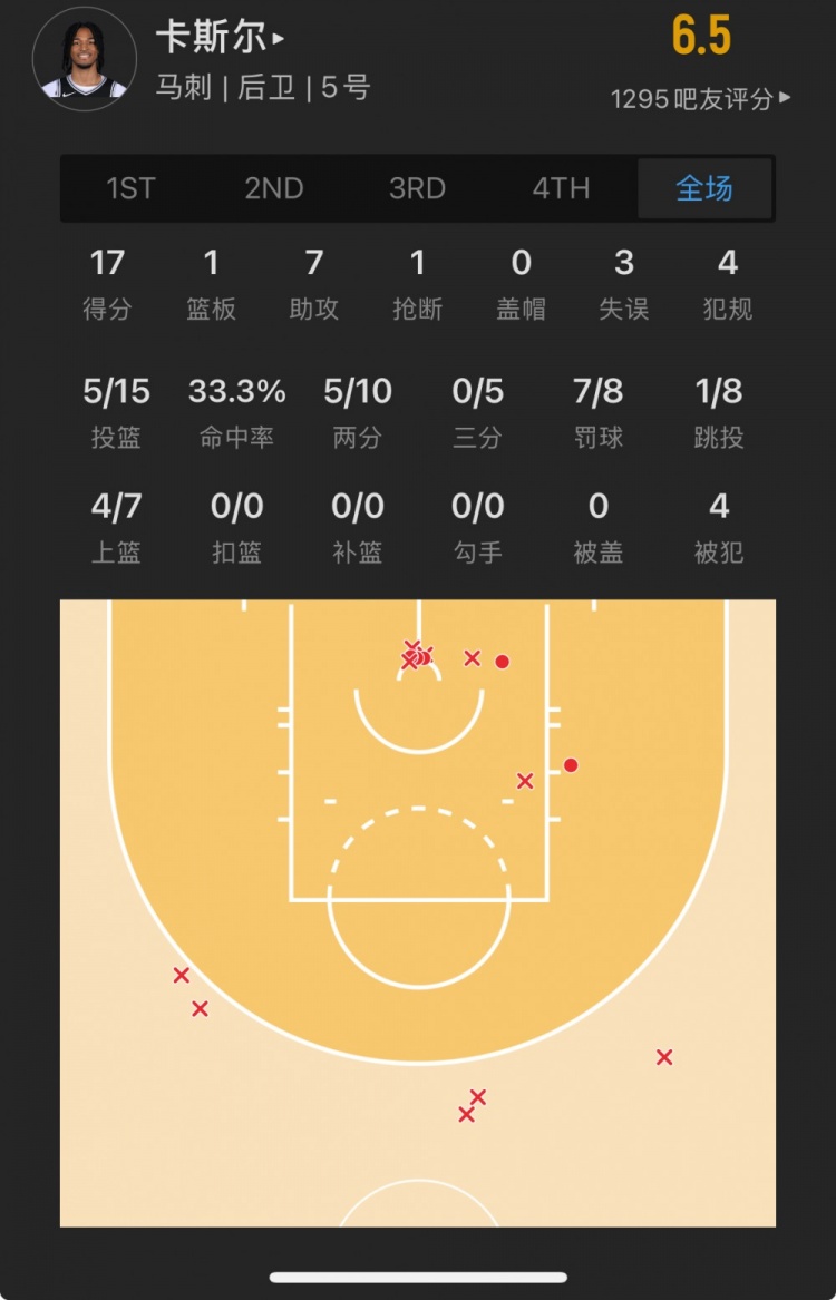 馬刺4號(hào)秀 斯蒂芬-卡斯?fàn)?登場(chǎng)35.9分鐘
