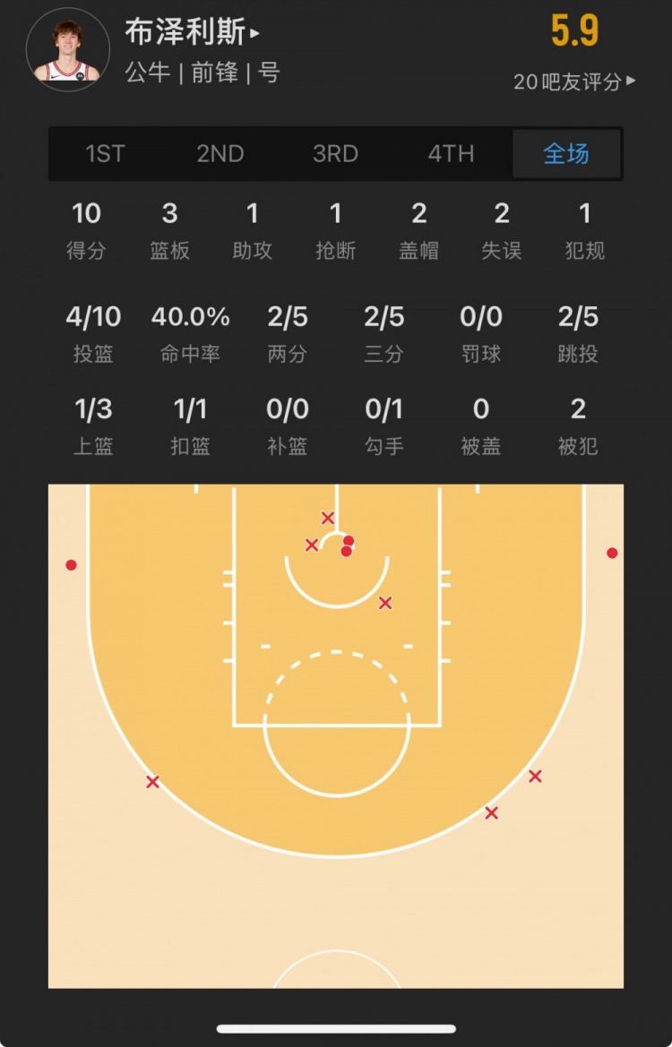 公牛11號(hào)秀 馬蒂斯-布澤利斯 登場(chǎng)18.7分鐘