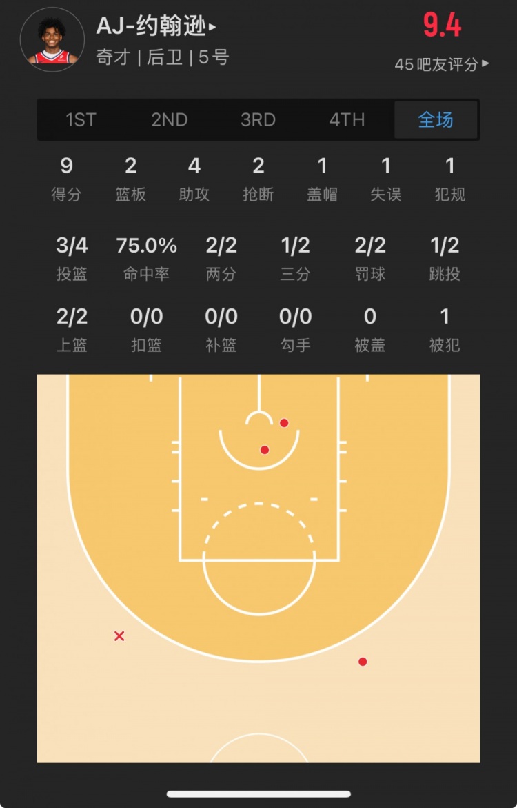 奇才23號(hào)秀 AJ-約翰遜 登場(chǎng)17.8分鐘