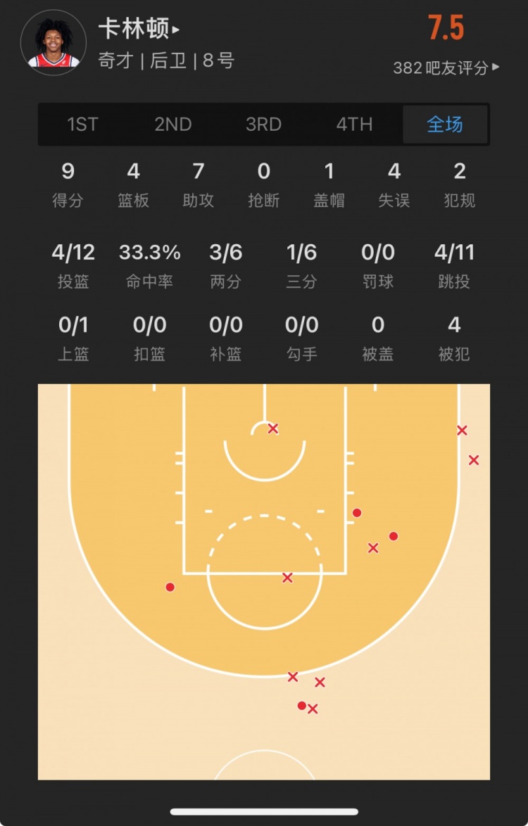 奇才14號(hào)秀 卡爾頓-卡林頓 登場(chǎng)30.0分鐘