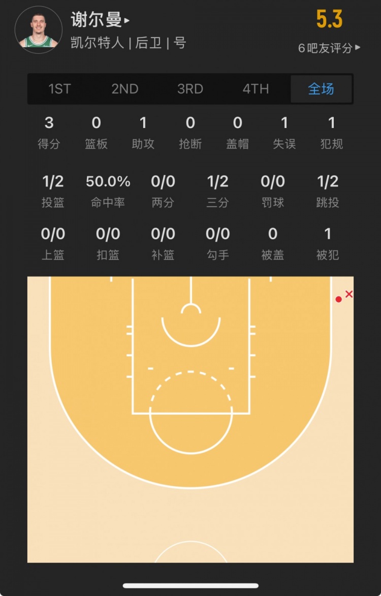 凱爾特人30號(hào)秀 貝勒-謝爾曼 登場(chǎng)10.8分鐘