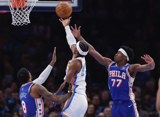 次節(jié)比賽,雷霆上來連續(xù)拿分,取得39-31領(lǐng)先,愛德華茲三分命中止血,喬治三分也進,76人再次追上比分。米切爾三分穩(wěn)住,霍姆格倫三分也進,喬治做出回應(yīng),馬克西和麥凱恩連續(xù)突破拿分,比分追至48平。威金斯三分命中,愛德華茲三分回應(yīng),兩隊再次陷入拉鋸戰(zhàn),馬克西三分命中反超,亞歷山大連拿4分,雷霆半場64-62領(lǐng)先76人。