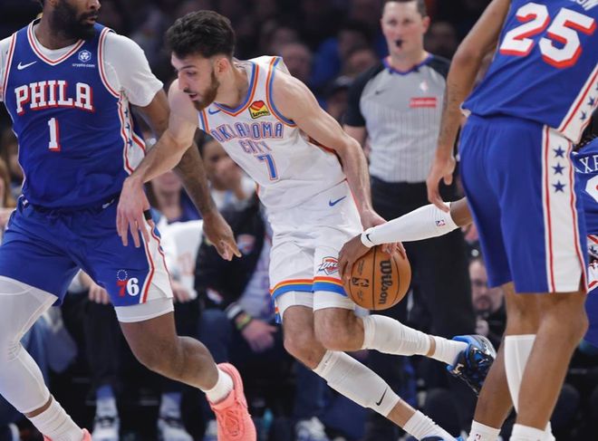 這場比賽切特·霍姆格倫狀態(tài)火熱,17中10拿到全場最高的29分,還有9籃板4蓋帽;亞歷山大也有著穩(wěn)定表現(xiàn),13中10拿到27分,連續(xù)103場20+,個人賽季第15次三節(jié)打卡。
